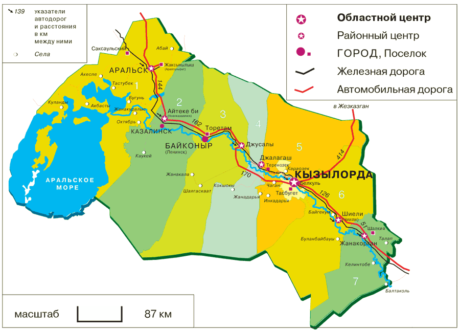 Қызылорда облысының картасы